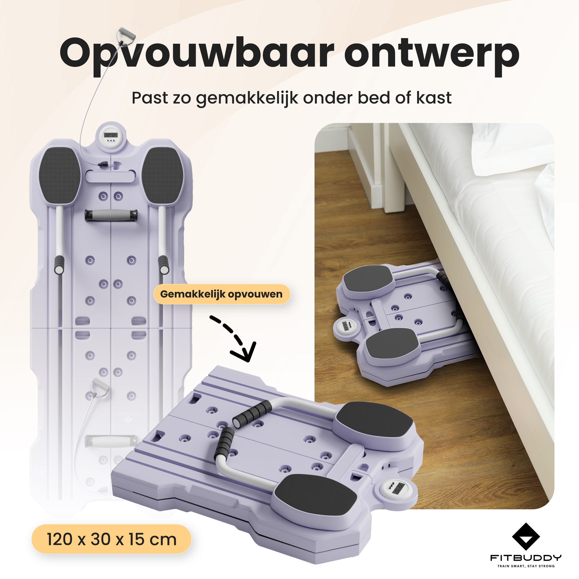 Fitbuddy® Pilates Reformer Board – 8 in 1 – Buikspiertrainer & Push up Bord – Opvouwbaar – Incl Trainingsmatje - Paars